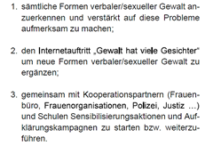 Mit dem Begriff Catcalling (zu deutsch etwa „Katzengejammer“) ist sexuelle Belästigung im öffentlichen Raum durch anzügliches Anreden, Nachrufen, Nachpfeifen oder sonstige Geräusche gemeint. Diese Art der sexuellen Belästigung ist für viele Frauen Alltag, auch minderjährige Personen sind davon stark betroffen. Daher wird im Beschlussantrag Folgendes gefordert: