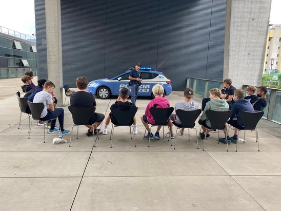 Praxisnaher Unterricht in einem Theoriefach. So geschehen kürzlich in der BGS F. Zwei Beamte der Staatspolizei stellten den Schülern den Polizeiberuf und die damit einhergehenden Rechtsinhalte vor. Im Unterricht ausgearbeitete Fragen wurden vorab den Experten zugeschickt. Die beiden Beamten, Elisa (Ufficio Minori) und Alex (Streifendienst) stellten zu Beginn der Stunde unter anderem die unterschiedlichen Polizeibehörden und deren Aufgaben vor und gaben den Schülern interessante Einblicke in den Alltag eines Staatspolizisten und in das Berufsbild Polizist. Zu den Highlights der zweistündigen Unterrichtseinheit, die vor dem Eingang der Schule stattgefunden hat, gehörten außerdem die Vorführung des Streifenwagens und dessen Ausstattung sowie die Vorstellung der unterschiedlichen Gegenstände, die ein Streifenpolizist mit sich führt. Ganz besonders gefallen hat den Schülern, dass sie alles hautnah erleben durften und unterschiedliche Gegenstände, wie z.B. die kugelsicheren Westen, die Einsatzhelme und sogar die (ungeladene!) Maschinenpistole in den Händen halten durften. Zum Schluss stellten die Schüler ihre Fragen, welche die beiden Experten ausführlich beantworteten. Viel zu schnell waren die beiden Stunden vorbei, für die Schüler der Klasse BGSF war eine lehrreiche und unvergessliche Stunde.